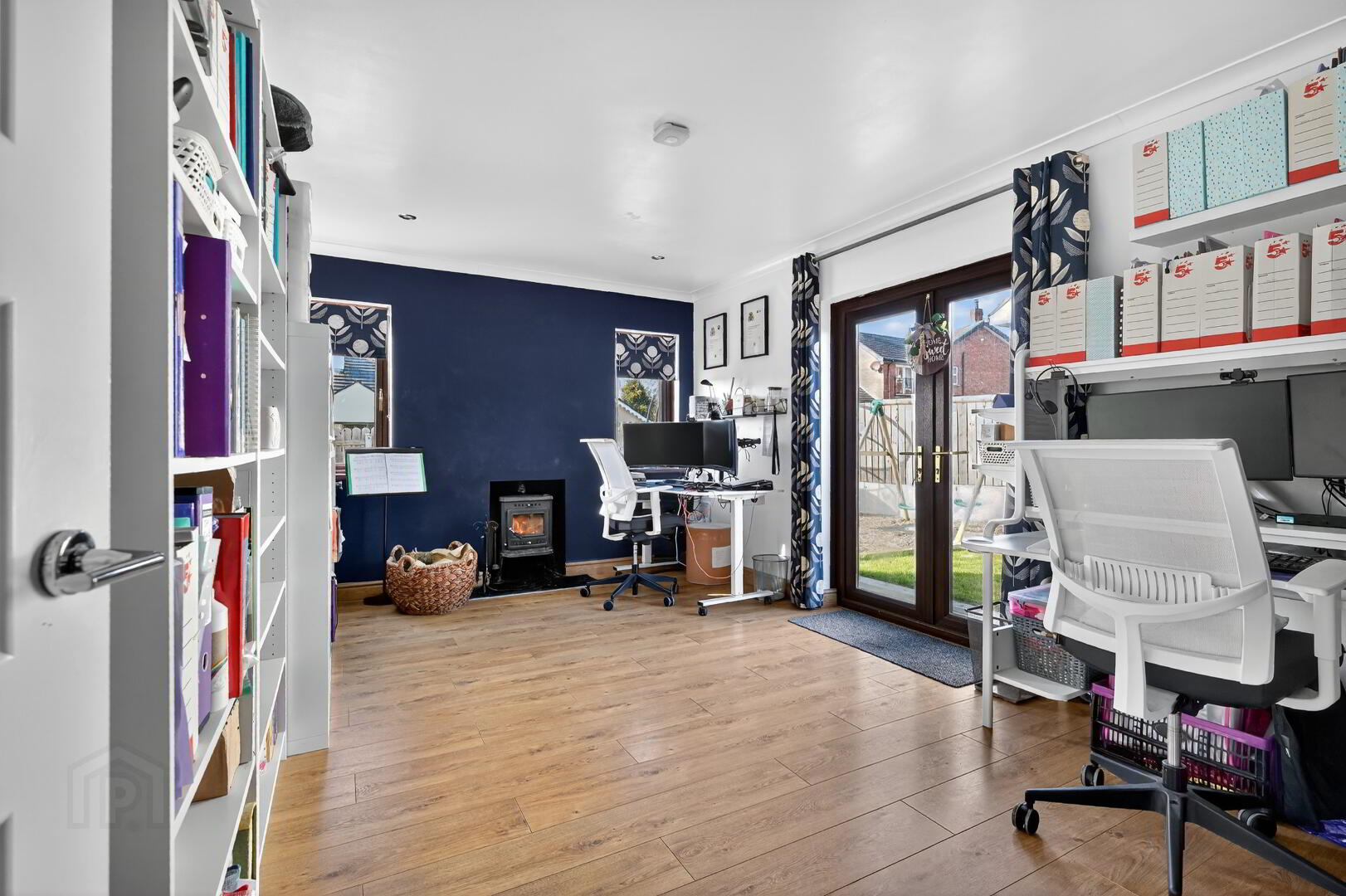 Lounge with feature multi fuel stove plus PVC patio doors to enclosed rear garden