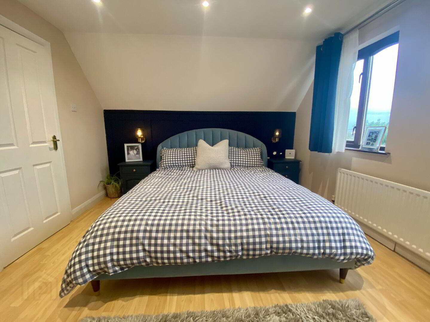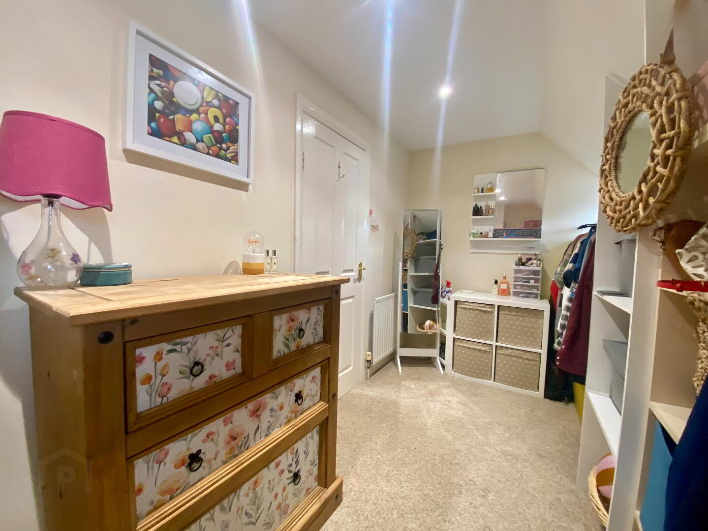 Gareth Mills Estate Agents are pleased to offer for sale this immaculate, well-presented detached home set on a spacious mature site in sought after location close to shops, schools and all public transport connections. The accommodation on offer comprises entrance hallway with solid wood flooring, lounge with feature wood burning stove, solid wood flooring and PVC patio doors to enclosed rear garden, kitchen fitted in a range of high and low level sage fronted units with contrasting work surfaces and integrated appliances, dining room with hardwood flooring leading to spacious family room. There is one ground floor bedroom with hardwood flooring accompanied by a modern 4 piece bathroom. On the first floor are 3 bedrooms all carpeted, master with ensuite shower room and separate WC and shower room. Outside the front is laid in paving with off road parking bounded for approx 4 cars. Detached matching garage with electric roller door. Fully enclosed rear and side garden laid in patio and lawn bounded by fence laid in lawn with paved patio bounded by hedging. 13 Mullaghmore Park serves an abundance of features such as oil fired central heating, solar panels, electric car charger, PVC framed double glazing, extensive use of solid wood flooring throughout, plus set on a spacious and mature site. We do suspect a high level of interest within this home and therefore early viewing comes highly recommended as internal inspection will surely impress.