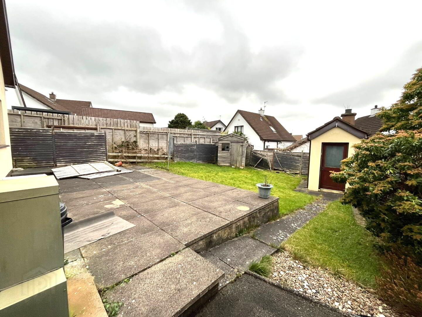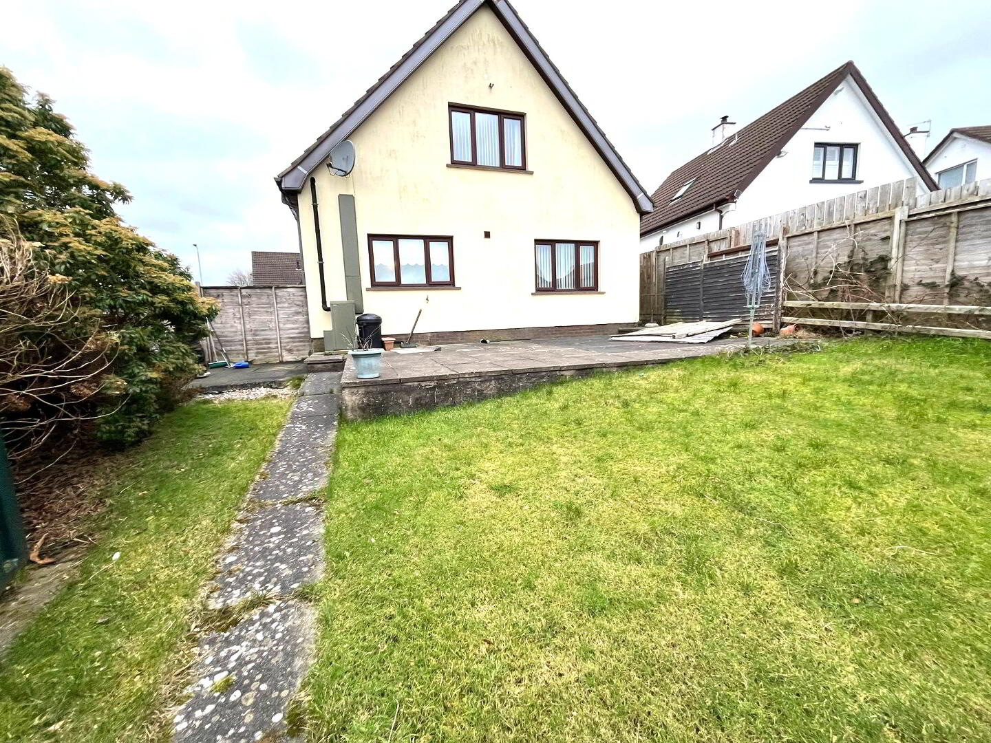 The front is laid in lawn and tarmac driveway approx 2 cars. Fully enclosed split level rear laid in paving and lawn bounded by fencing, brick built shed.