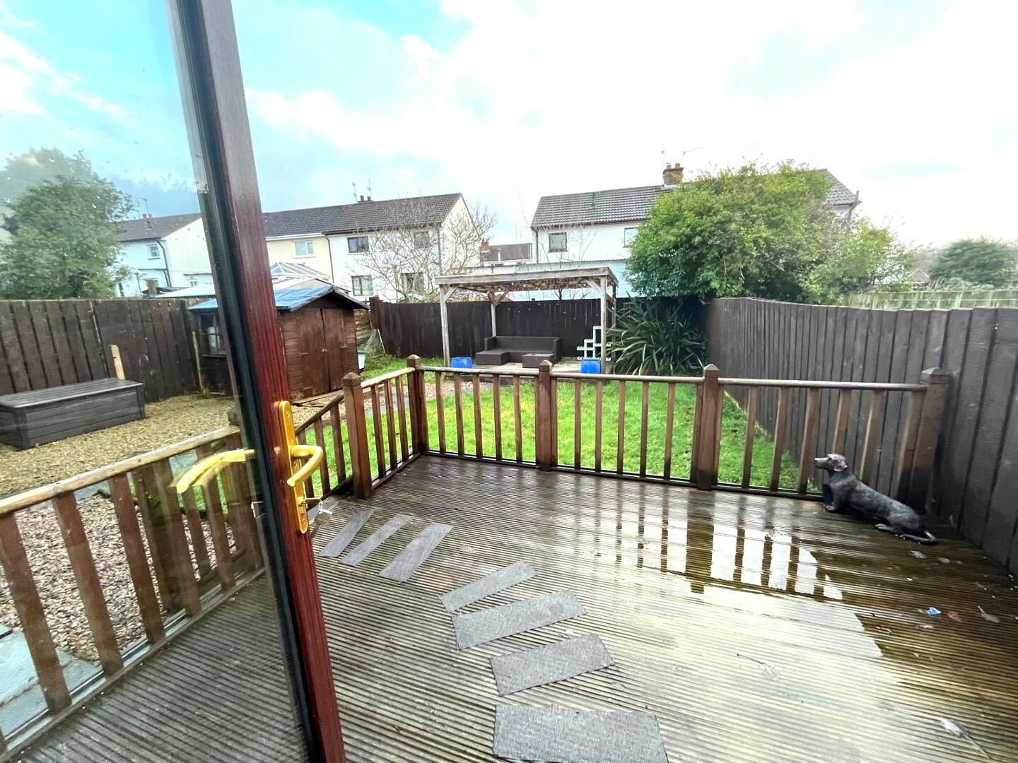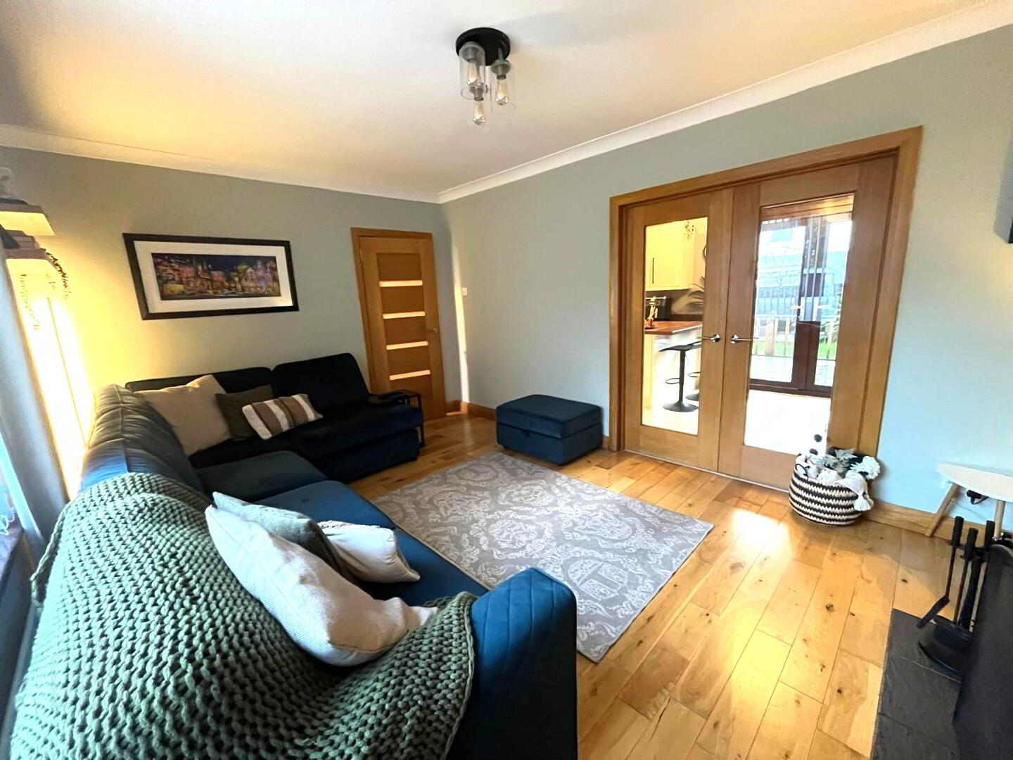 Composite front door, solid wood flooring, storage cupboard, under stairs space.