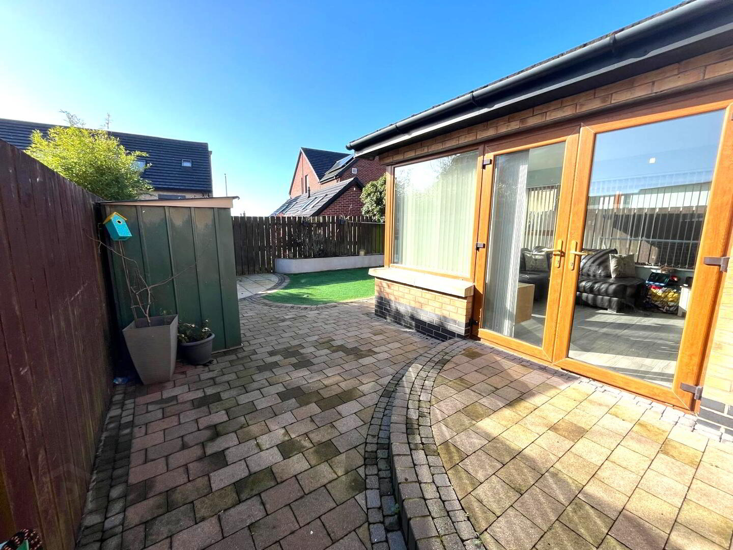 Front laid in brick paving providing off road parking for approx. 2 cars. Fully enclosed rear laid in artificial grass and paved area bounded by wall.