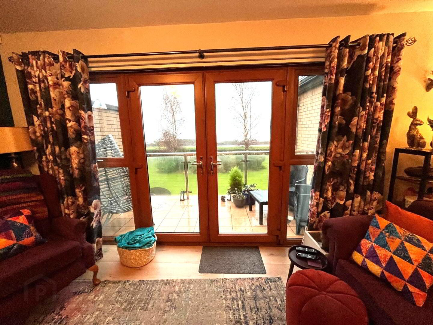 Wooden doors to patio, window to front aspect, laminate wood flooring.