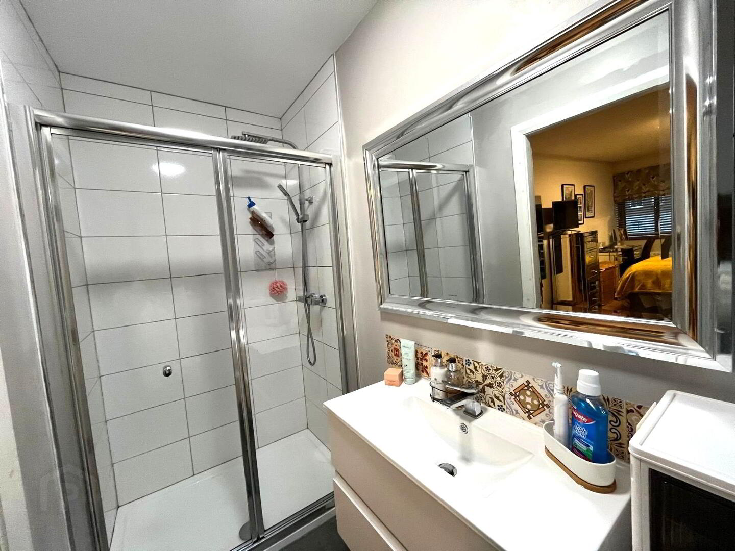 White suite comprising low flush WC, shower cubicle, wash hand basin with mixer tap, window to rear aspect.