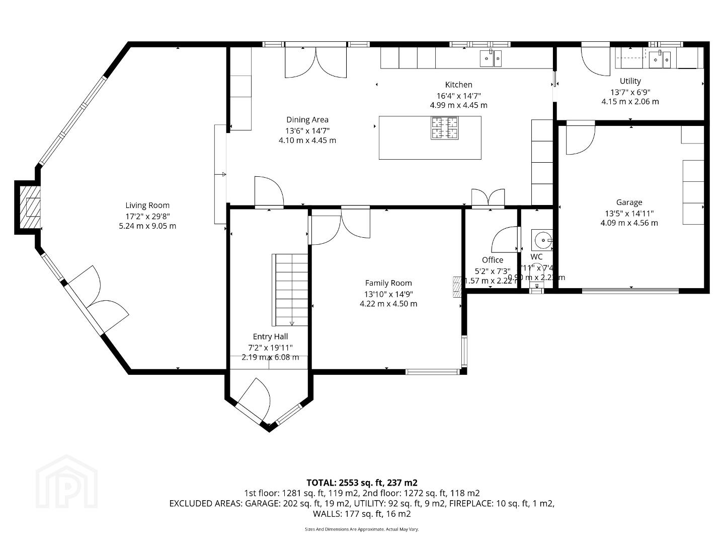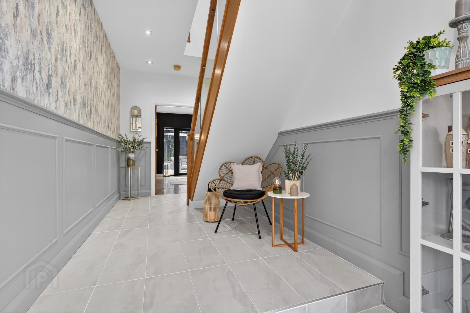 PVC entrance door, tiled flooring, stairs to first floor.
