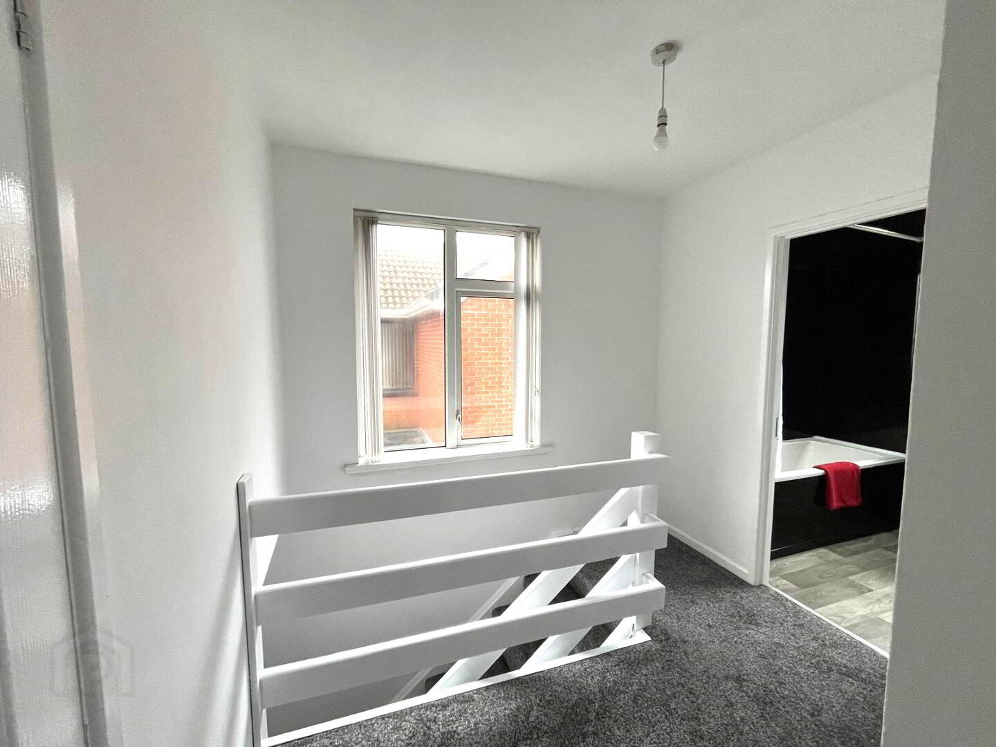 Composite entrance door, laminate wood flooring, stairs to first floor.