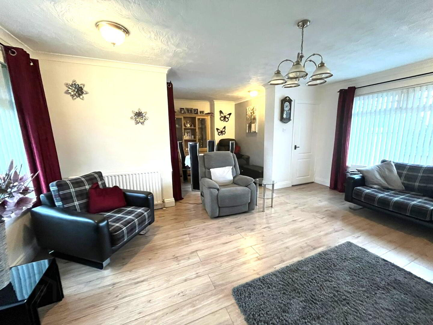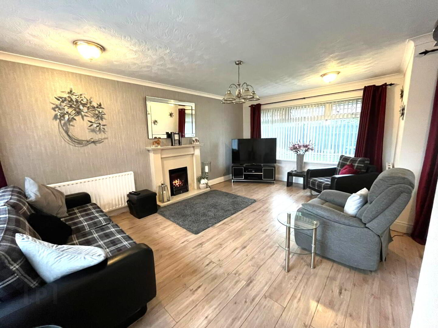 Feature fireplace with gas insert, laminate wood flooring, windows to front and rear aspects.
