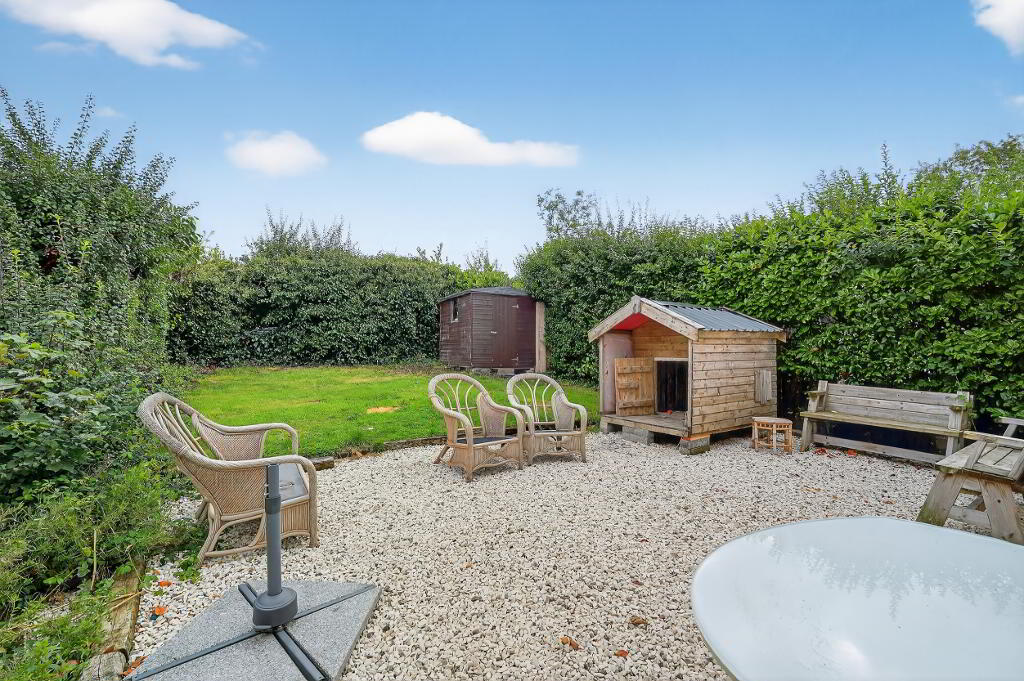 Mature spacious site with fully enclosed rear garden laid in lawn bounded by mature hedging
