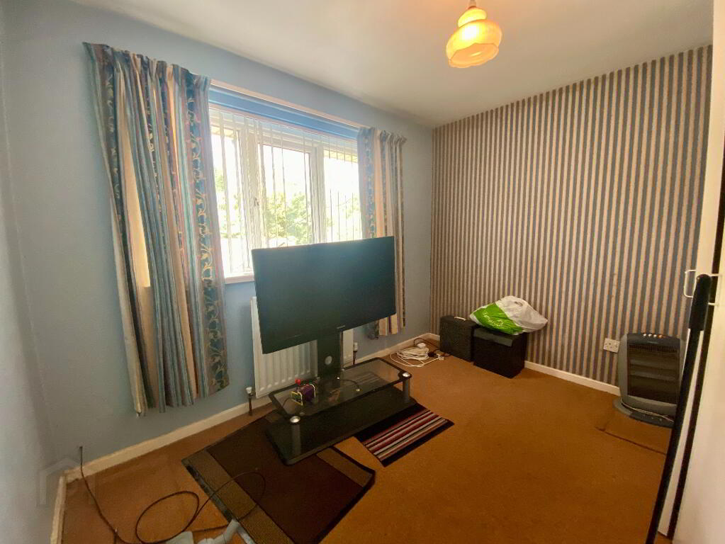Window to front aspect, tiled feature fireplace with electric fire, carpeted.