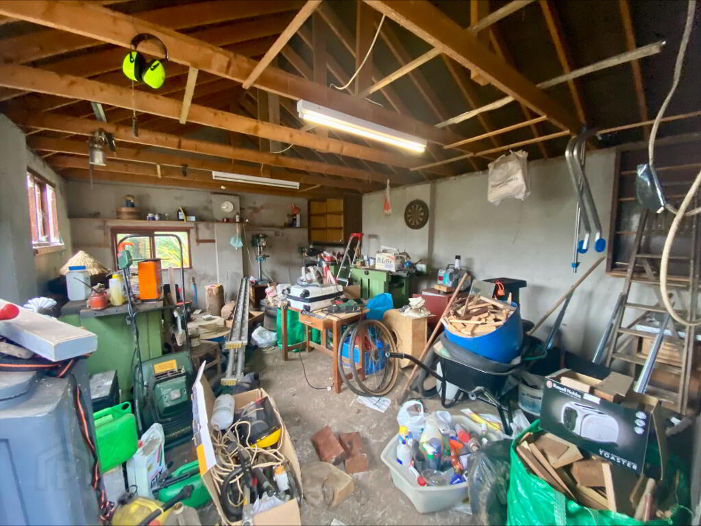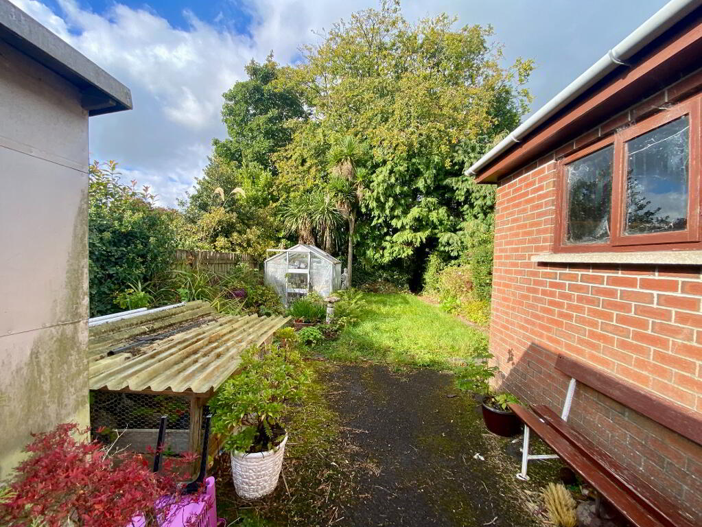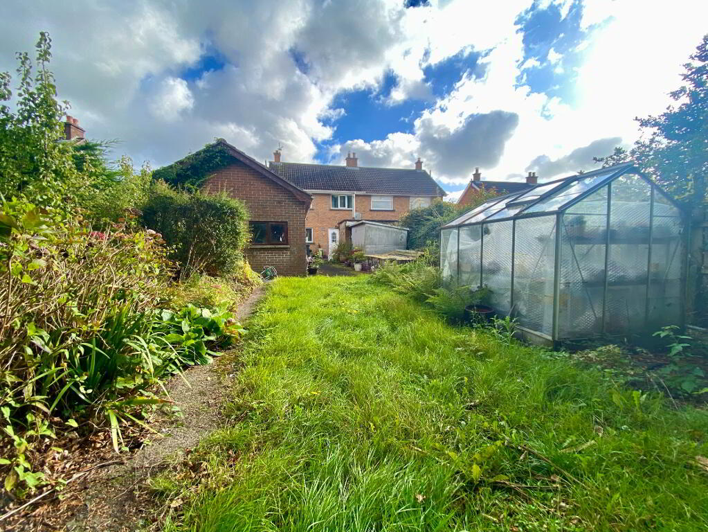 Front is laid in lawn and patio with lean to on side aspect. Driveway with parking for approx 3 cars. Fully enclosed rear laid in lawn and patio with mature fruit trees, greenhouse and shed.