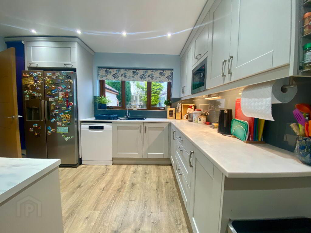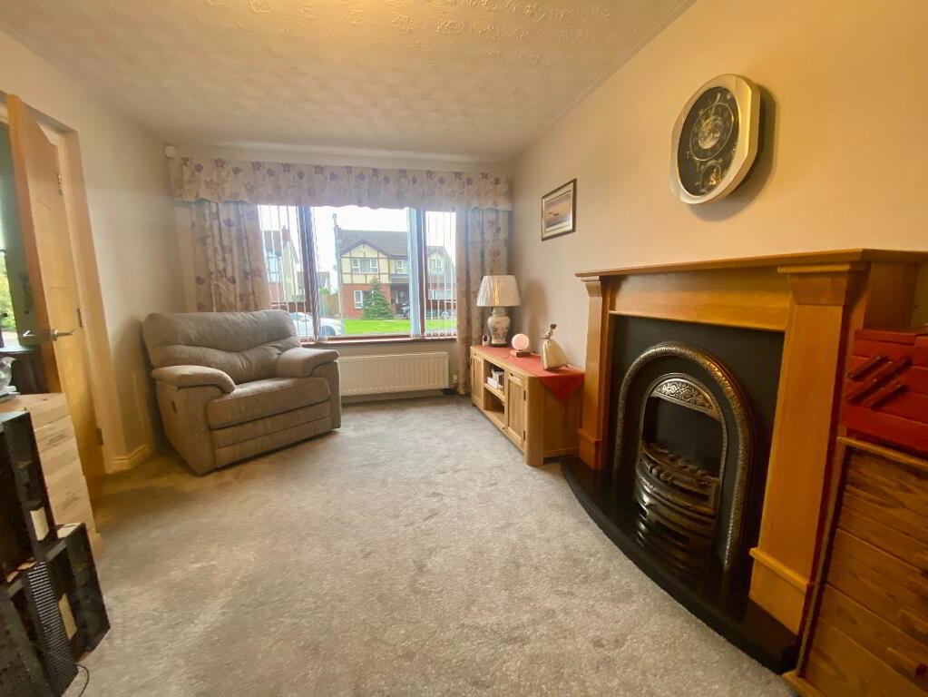Gareth Mills Estate Agents are pleased to offer for sale this immaculate,well-presented 4-bedroom detached family home set on a spacious site in highly regarded cul-de-sac location. The accommodation on offer comprises of welcoming entrance hallway with laminate wood flooring, lounge with feature fireplace and window to front aspect, family room with feature fireplace, separate dining room with access to conservatory - PVC patio doors to enclosed rear garden and ceramic tiled flooring, spacious kitchen fitted in a range of high and low level Grey fronted units with integrated appliances, adjoining utility room and downstairs WC. On the first floor there are 4 generous sized bedrooms accompanied by a 4 piece white family bathroom suite. Outside the spacious front is laid in lawn with brick paved parking leading to detached matching garage. Fully enclosed rear laid in lawn with paved patio area and paved pathways. 33 Tudor Drive serves an abundance of features such as gas fired central heating, PVC framed double glazing, plus set on a spacious mature site. We do suspect a high level of interest within this home and therefore early viewing comes highly recommended as internal inspection will surely impress.