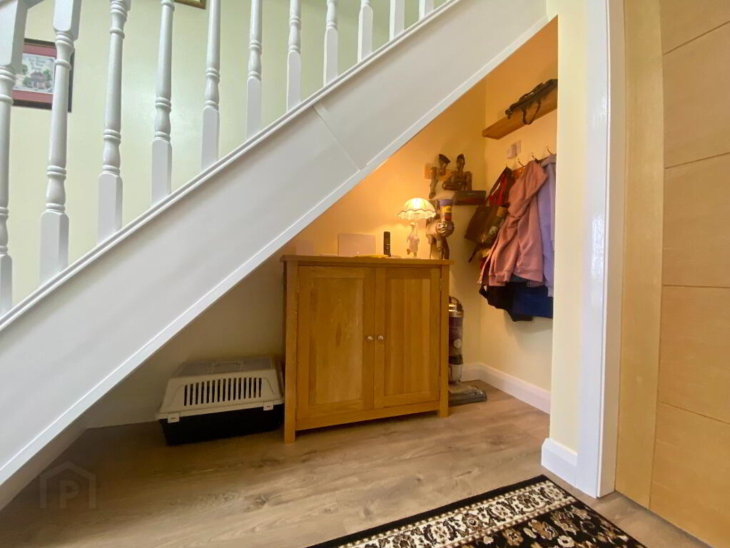 PVC entrance door, stairs to first floor, laminate wood flooring.