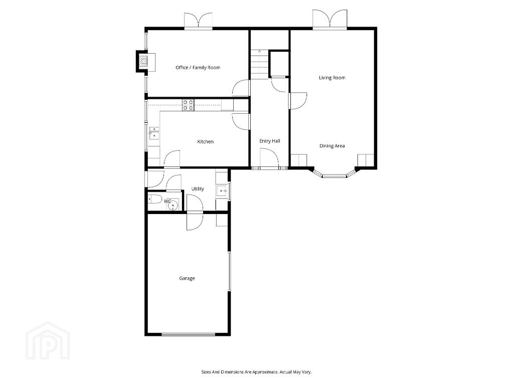 PVC entrance door, laminate wood flooring, stairs to first floor, storage cupboard.