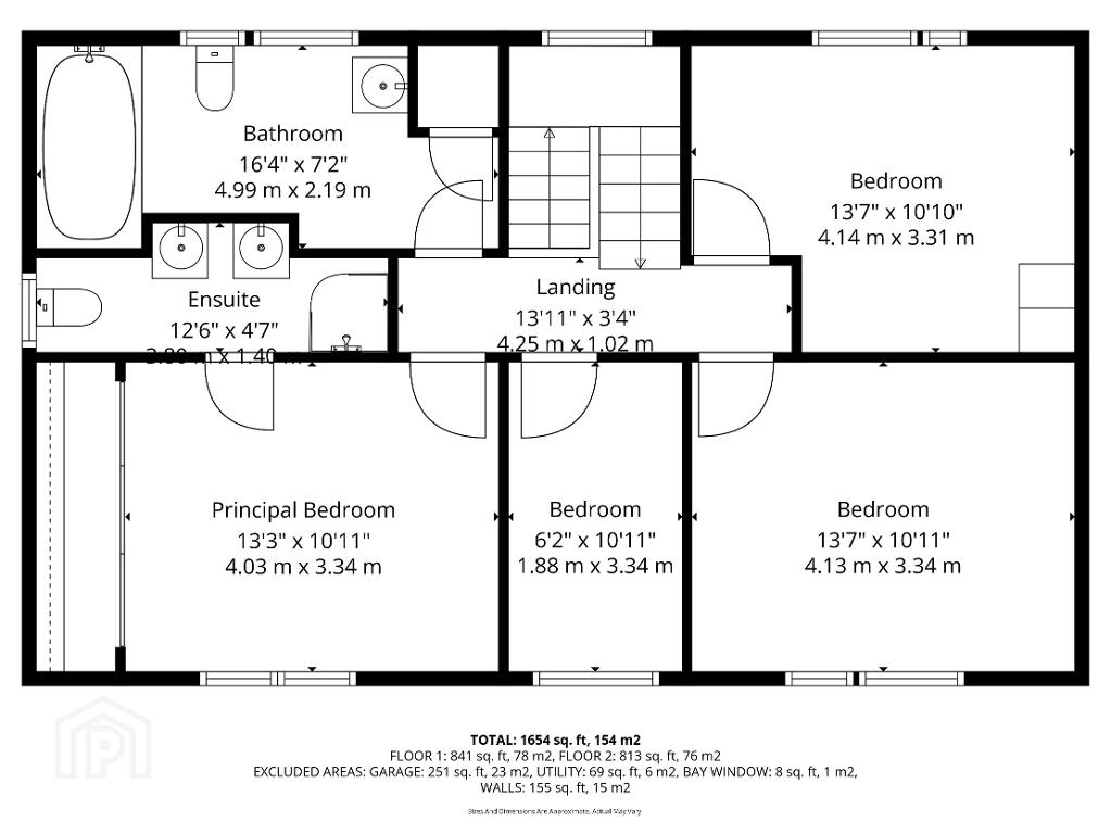 4 generous sized bedrooms all carpeted, Master with en suite shower room