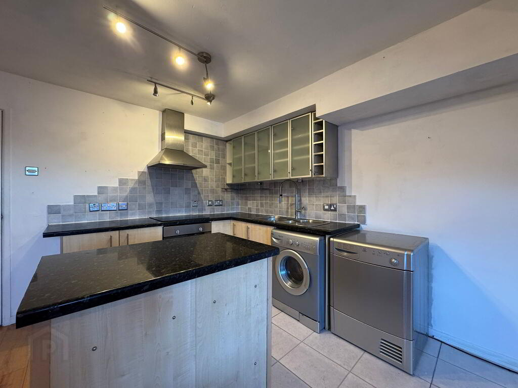 units with integrated appliances. On the ground floor there is 1 generous sized bedroom accompanied by a 4 piece white family bathroom suite with panelled bath and shower cubicle, on the second floor there is a 2nd bedroom with velux window and eaves storage.
