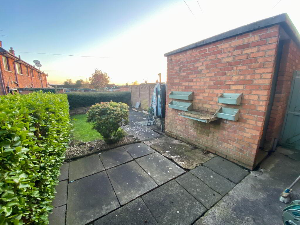 Fully enclosed rear garden laid in lawn bounded by hedging with