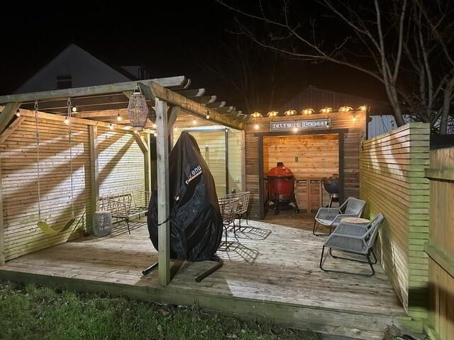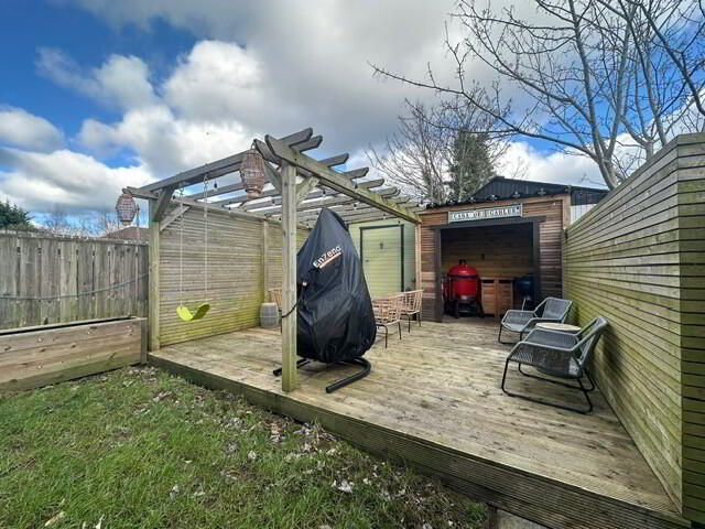 The front is laid in lawn with pavier driveway. Fully enclosed rear laid in lawn and decking bounded by fencing with BBQ area and shed.