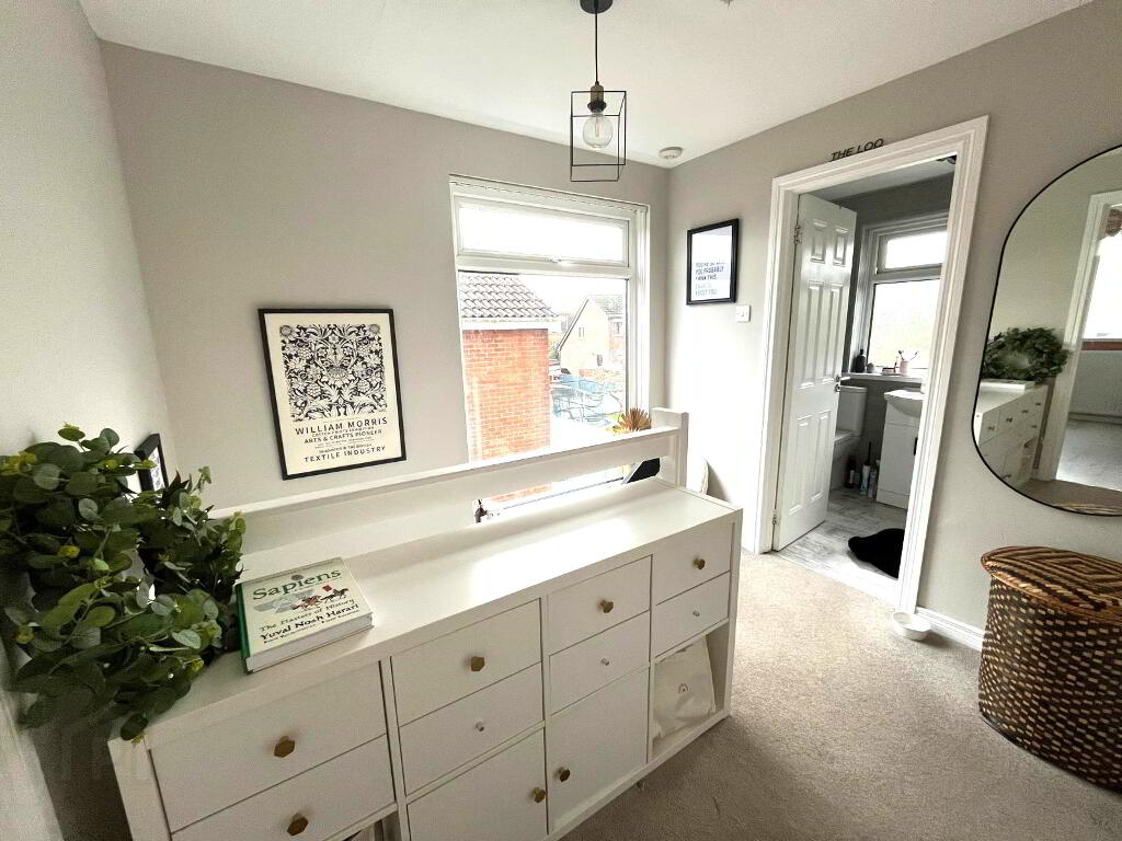 Window to front aspect, laminate wood flooring, built in wardrobe.