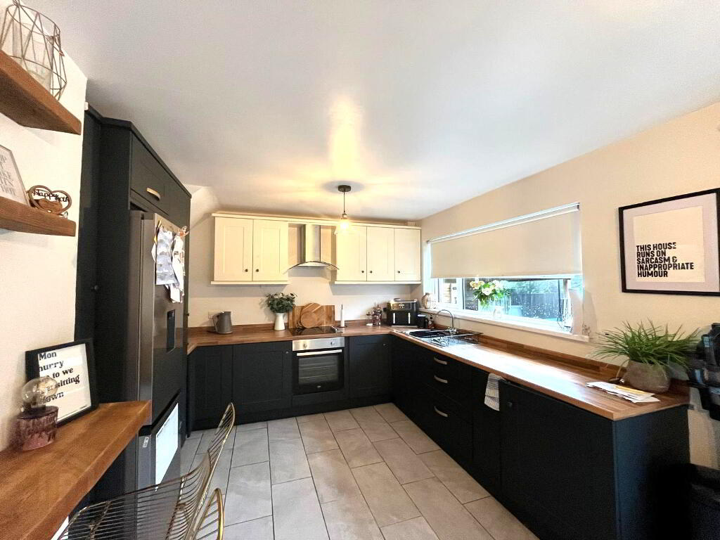 Gareth Mills Estate Agents are delighted to offer for sale this immaculate well presented 3 bedroom Semi-Detached family home finished to a high standard throughout, set close to shops, schools and all public transport connections.The accommodation on offer comprises entrance hallway with laminate wood flooring, lounge with feature fireplace and window to front aspect, spacious kitchen/dining fitted in a range of high and low level units with contrasting work surfaces. On the first floor there are 3 generous sized bedrooms accompanied by a piece white family bathroom suite with panelled bath and shower over. Outside the front is laid in lawn with paved driveway parking leading to detached matching garage. Fully enclosed rear laid in lawn with paved area bounded by fencing. 11 Ravelston Park boasts oil fired central heating and PVC framed double glazing. This is an ideal purchase for the first or second time buyer . We do suspect a high level of interest within this home and Therefore we strongly recommend early viewing to avoid disappointment as internal inspection will surely impress.