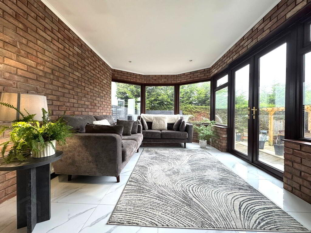 Sunroom with tiled flooring and PVC doors to enclosed rear garden
