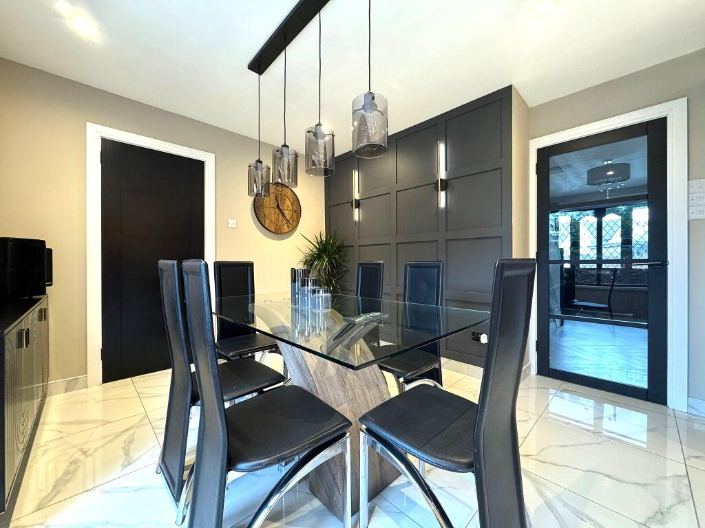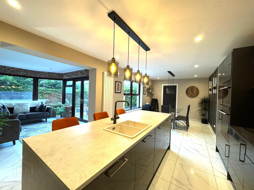 Kitchen/Dining fitted in a range of high and low level units with contrastingwork surfaces and integrated appliances plus Island Unit