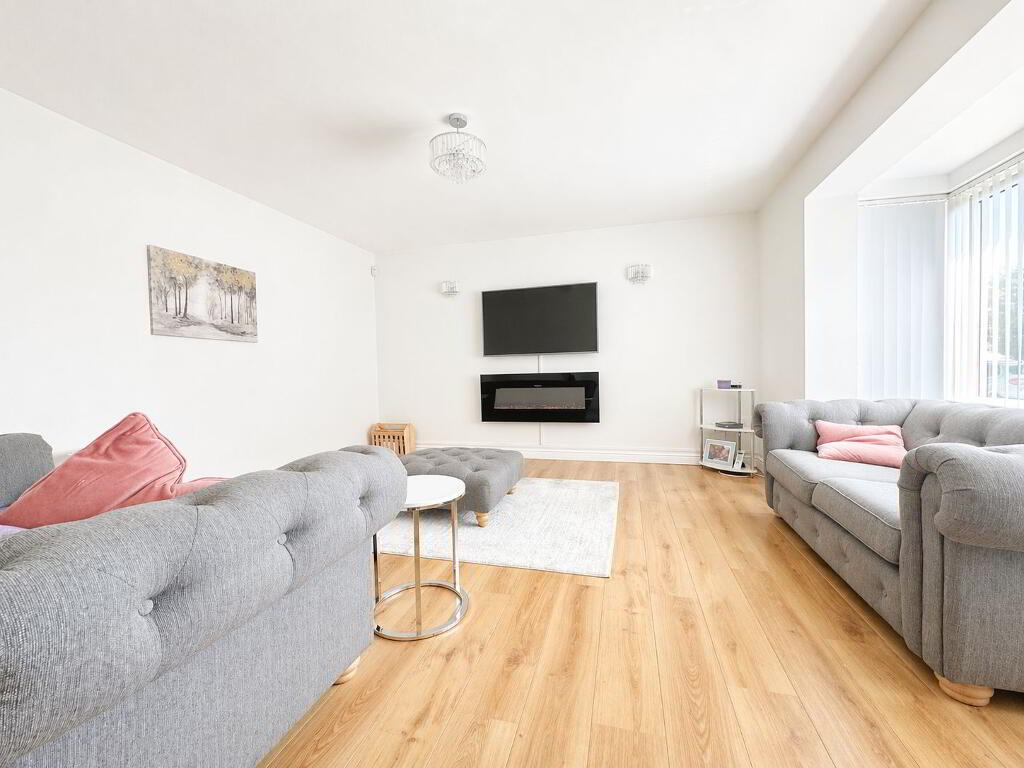 Feature wall fire, laminate wood flooring, bay window to front aspect.
